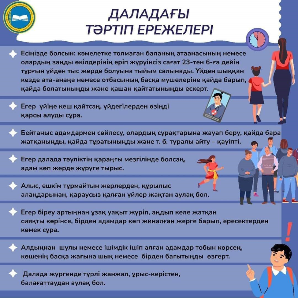 Әрбір оқушы және ата-ана қауіпсіздік ережесін міндетті түрде білуі керек.
