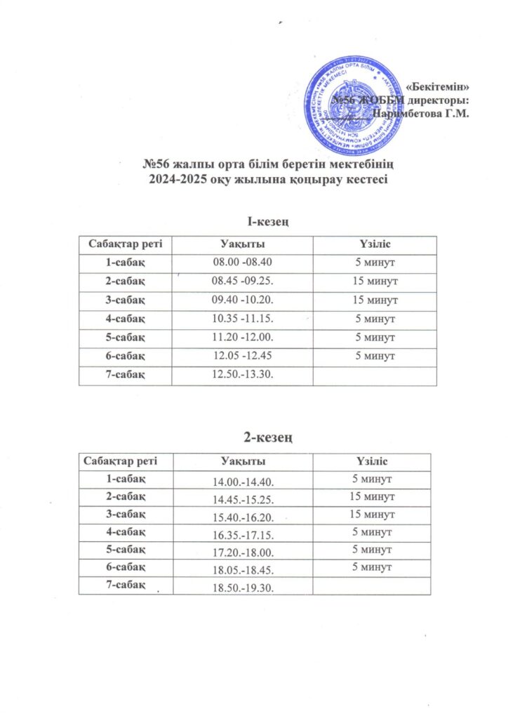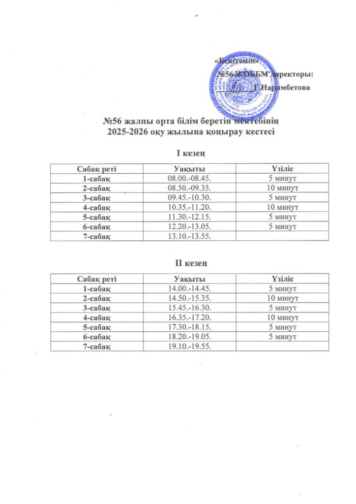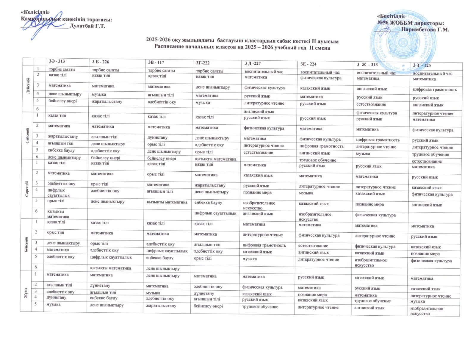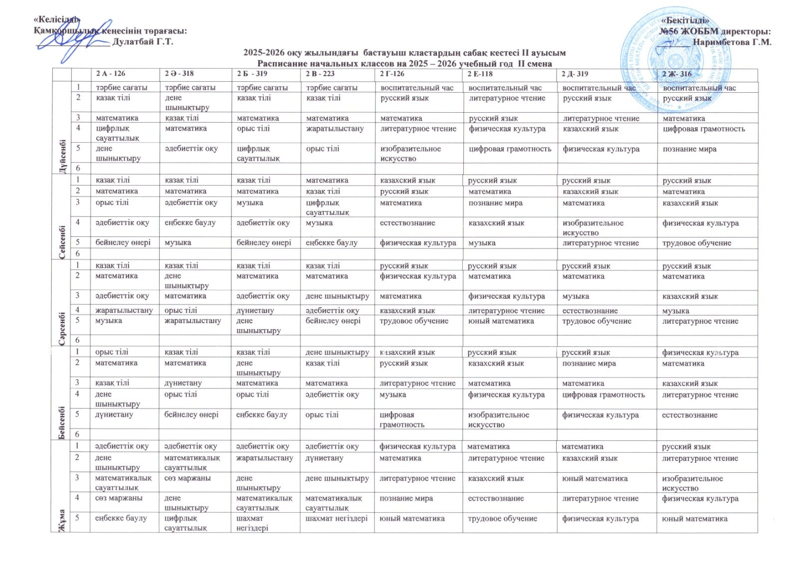 2025-2026 оқу жылының 1 жж сабақ кестесі 2 кезең