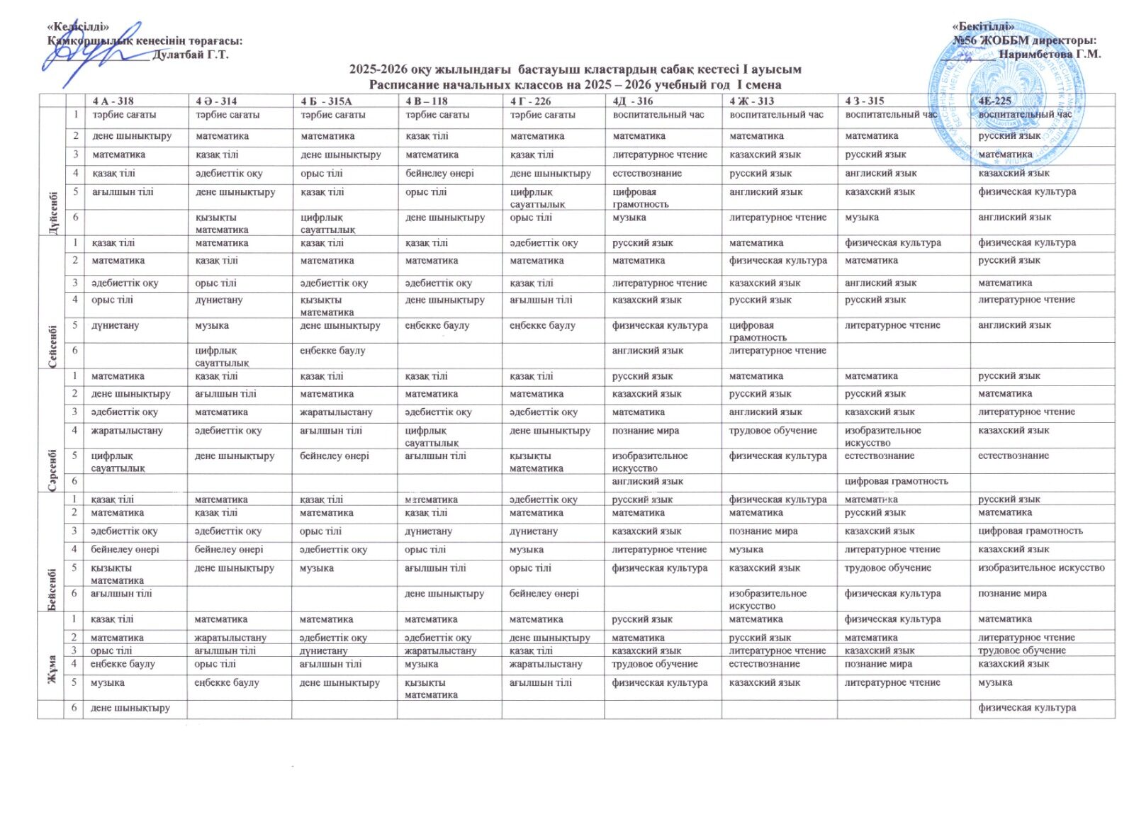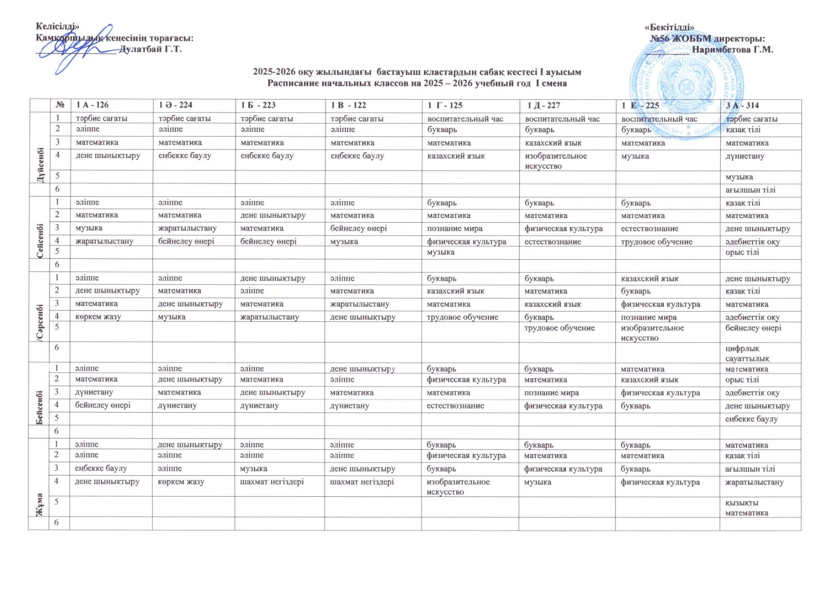 2025-2026 оқу жылының 1 жж сабақ кестесі 1 кезең